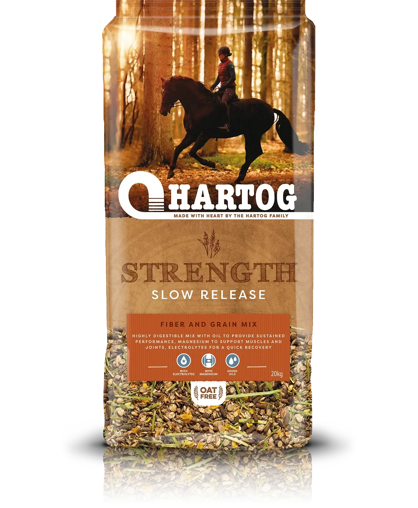 De Hartog Strength voorziet een sportpaard met alle benodigde vitamine, mineralen en spoorelementen als aanvulling op ruwvoer. Deze sport muesli is samengesteld met verschillende hoogwaardige granen zoals gerst, mais en spelt. Naast granen bevat de Hartog Strength ook toegevoegde oliën zoals lijnzaadolie, koolzaadolie en raapzaadolie om je paard te voorzien met gezonde vetten.