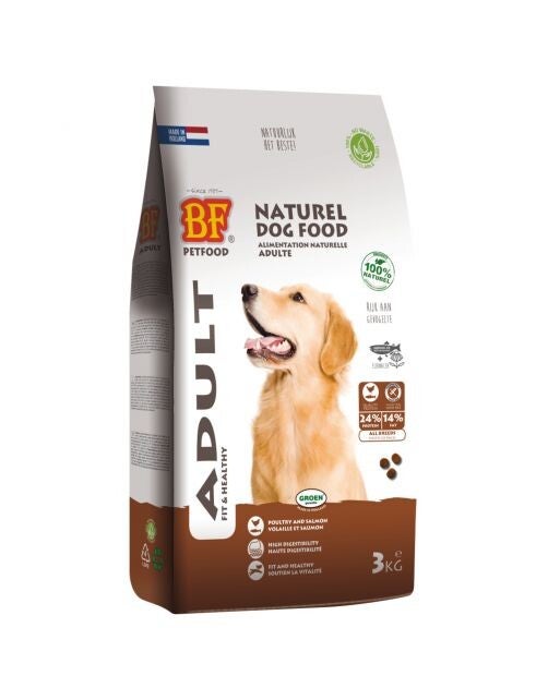 Ter vervanging van de Biofood Puppy voeding is de Adult Krokant van Biofood een goede opvolger. Een voeding op basis van 37% gedroogd gevogelte en zalm. De Adult Krokant is een volledige voeding op natuurlijke basis voor volwassen honden van alle rassen. Deze voeding is licht verteerbaar en zeer smaakvol en bevat eiwitten, vetten, koolhydraten, vitaminen en mineralen die bijdragen aan een goede gezondheid van je hond.